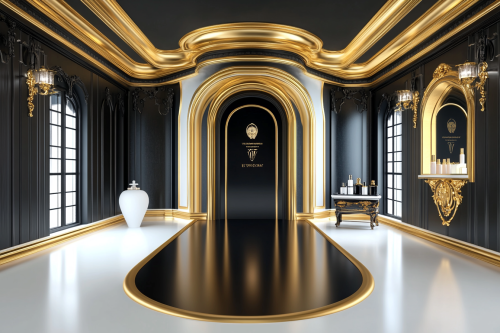 The concept of a mystical perfume house set against gold and black backgrounds conjures an image of a luxurious, enigmatic, and enchanting place where high-end fragrances are crafted in secrecy. This imagined house would have a strong air of opulence and mystery, blending elements of old-world craftsmanship with modern allure, symbolized by the rich contrasts of gold (wealth, power, and illumination) and black (mystery, sophistication, and elegance). Photorealism --ar 3:2 --style raw --p qbitjua