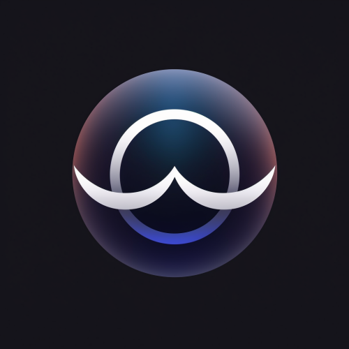 A minimalistic icon with sleek, modern design, representing a challenge between reality and AI. The icon should feature a simple, circular design with subtle metallic and glass textures, integrating soft reflections. The background should be a smooth gradient, using dark tones such as charcoal or deep blue, with a faint glow around the edges for a refined look. The icon should include abstract elements suggesting technology and artificial intelligence, but in a subtle and elegant way. No bright neon colors--just soft contrasts to fit the overall aesthetics of your profile. --v 5.1 --ar 1:1 --chaos 5 --no text