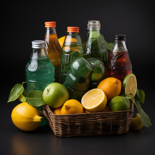 different recyclable containers that are empty and ready to be recycled. There could be a milk carton, a soda can, a juice box, a plastic water bottle and a glass cola bottle. --s 750 --v 5.2