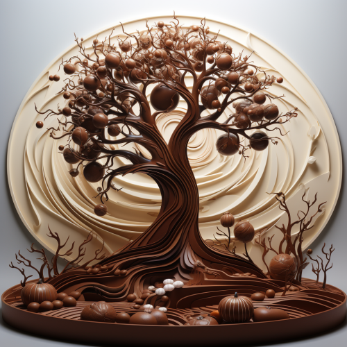 Big bright pumpkin curved in Japanese style sits on a dark emerald velvet tablecloth covered with golden embroidery.