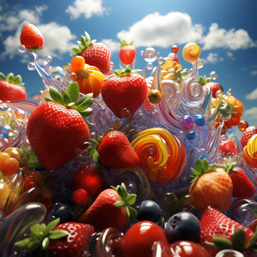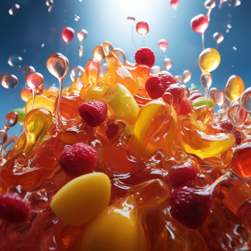 atmospheric, photorealistic, explosive, detailed, hyperrealism in a organic colorful universe that resembles the inside a mouth but brighter as if it were a dance club, colorful vibrant energetic, millions of assorted realistic 3d gummy candies, realistic 3d gummy bears, realistic 3d peach rings, realistic 3d strawberry gummies, flying around, dancing on the tongue, happy taste buds, 4k, macro, abundance, the screen is filled with jelly candy. As if the candy were dancing to a song, in a way of music visualization --s 250