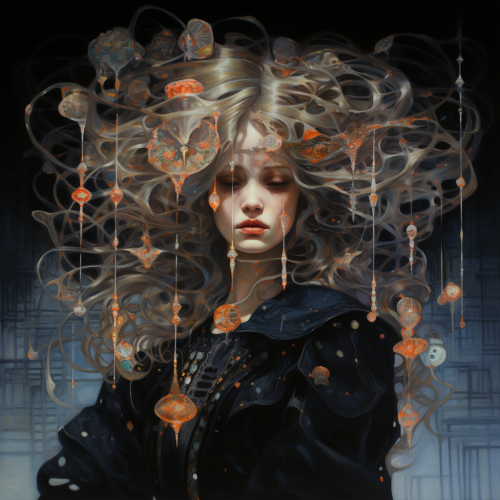 Cyborg love won't cost you much because cyborg love comes free of Charge. A Faile and, KAWS and Shepard Fairey inspired street art illustration. Vintage 90's art, highly detailed, gritty, raw, counterculture, grunge inspired textures, bold and muted colors and tones, epic cinematic lighting, no blur, graffiti-inspired, raw, brightly lit, bright even lighting, bright lighting, pastel, hyper maximalist, vibrant colors, hd extremely detailed digital art, key visual, cover artwork, ultra-detailed, 32k, ultra wide angle, epic scene, epic perspective, epic composition, wide shot, cover artwork, spectral colors, neon, opal, epic cinematic lighting, very high detail, hdr, cinematic lighting, 8k, insanely detailed and intricate, elegant, ornate, hyper realistic, super detailed, intricate detail, HDR, extremely detailed, perfectionism, octane render, immersive, octane render, unreal engine 5, photoshopped, post-production, epic scene, Epic composition, epic perspective, epic cinematic lighting, photoshopped, super resolution, 12k, ultra hd, post-production, maximum detail, best image quality, --niji 5 --chaos 10 --ar 21:30 --s 700