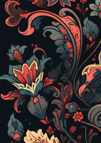 Intricate paisley inspired pattern, modern reimagination of a paisley pattern on black background. A Faile and, KAWS and Shepard Fairey inspired street art illustration. Vintage 90's art, highly detailed, gritty, raw, counterculture, grunge inspired textures, bold and muted colors and tones, epic cinematic lighting, no blur, graffiti-inspired, raw, brightly lit, bright even lighting, bright lighting, pastel, hyper maximalist, vibrant colors, hd extremely detailed digital art, key visual, cover artwork, ultra-detailed, 32k, ultra wide angle, epic scene, epic perspective, epic composition, wide shot, cover artwork, spectral colors, neon, opal, epic cinematic lighting, very high detail, hdr, cinematic lighting, 8k, insanely detailed and intricate, elegant, ornate, hyper realistic, super detailed, intricate detail, HDR, extremely detailed, perfectionism, octane render, immersive, octane render, unreal engine 5, photoshopped, post-production, epic scene, Epic composition, epic perspective, epic cinematic lighting, photoshopped, super resolution, 12k, ultra hd, post-production, maximum detail, best image quality, --v 5.2 --chaos 10 --ar 21:30 --s 700