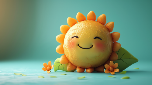 Smiling Sun Emoji: A bright yellow sun with a cheerful smiling face, beaming with joy on a green background. perfect for representing happiness, sunshine, and good vibes. --ar 16:9 --v 6.0 --style raw --s 750