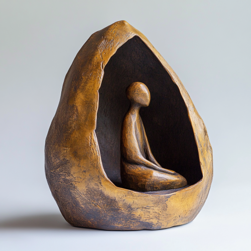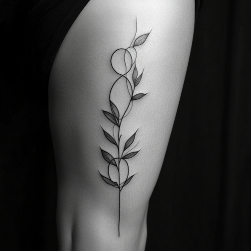 an upper arm tattoo sleeve in the style of Guy aitchison, depicting a meditating human head surrounded by bioorganic intertwined structures. The design should express a peaceful connection between humanity and nature.7