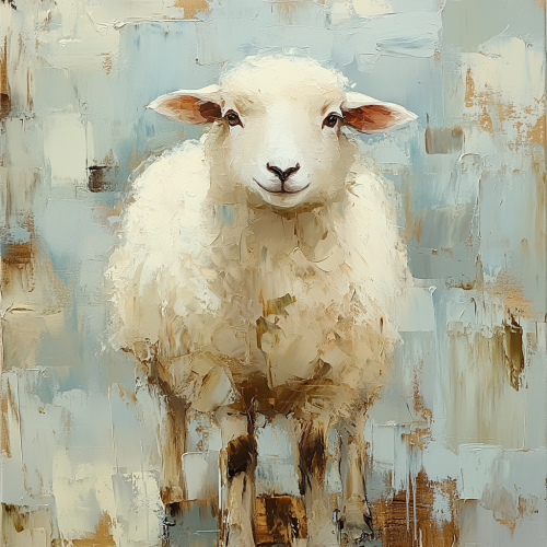 a painting of a young fluffy sheep in the style of Jeremy Mann artist, palette knife, long brushstrokes, abstract, bold brushstroke, square , energic, passion