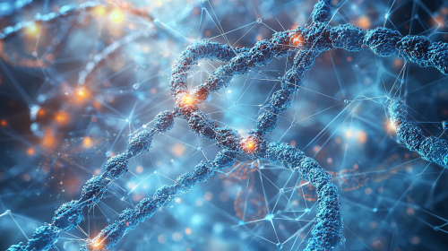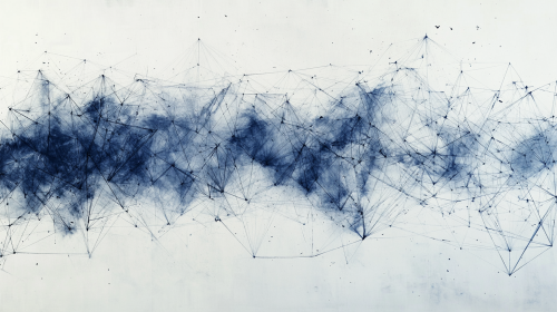 An abstract representation of medical research, featuring interconnected nodes and pathways resembling a network of knowledge, emphasizing the complexity and interconnectedness of scientific discoveries. --no text fonts letters watermark words typography slogans signature --ar 16:9 --q 2 --v 6.1