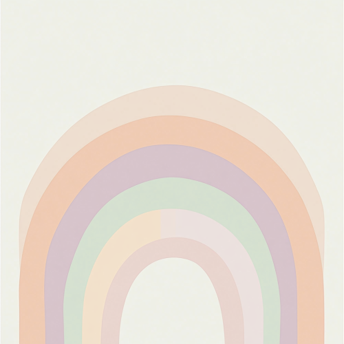Simple, curved rainbow arches in muted pastel shades (peach, mint, lavender) against a cream-colored background, clean and cute, with no hard outlines.