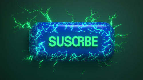 a royal blue SUBSCRIBE LABEL with high electrical waves high vibration (the button has the letters SUBSCRIBE in it (green screen background) --ar 16:9