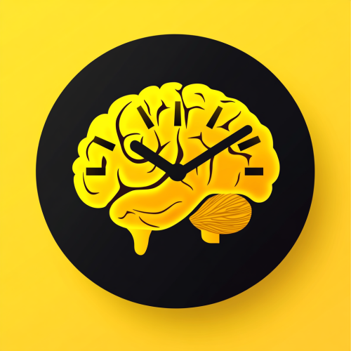 A black to yellow gradient, a scan copy of single brain, fmri scan copy of brain, icon of clock, both the image should look like icon of brain and clock with glowy white colour, image should be professional, looks minimalist,