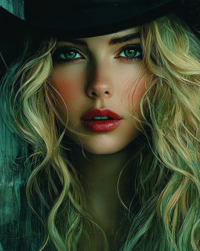 A primarily monochromatic image of Stevie Nicks (of fleetwood mac fame) in shades of green color, highlighted with three vibrant accent colors; features rich textures like brushstrokes, grain, and embossing; the selective color accents draw focus to key areas; professional, engaging artwork with a uniquely sophisticated aesthetic --ar 4:5 --v 6.1 --q 2 --s 750