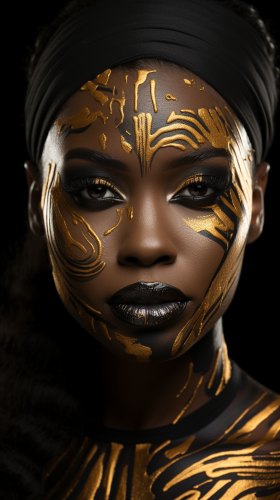map of africa on the face of a beautiful gorgeous black woman on a black background --ar 9:16 --v 5.2 --s 650