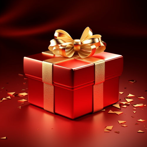 Beautiful red gift box design There is a golden bow tied to the gift box 3D stylize very high