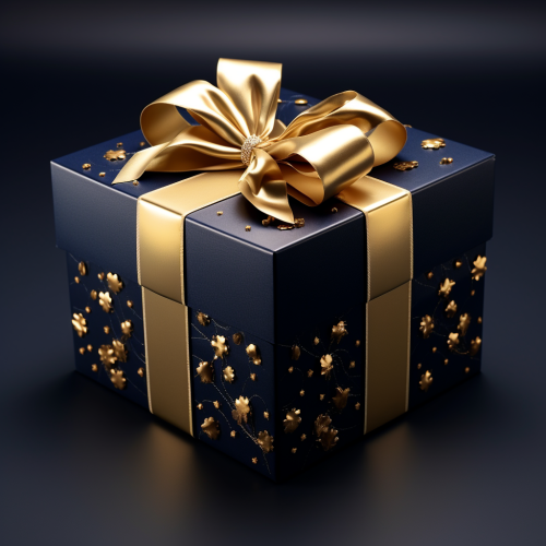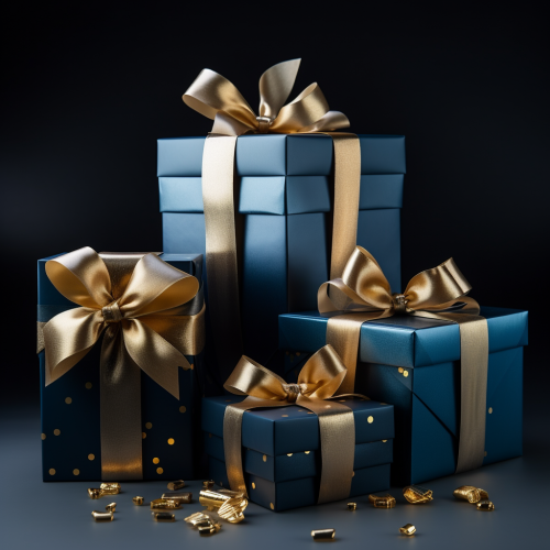 Beautifully designed gift boxes There is a golden bow tied to the gift box.
