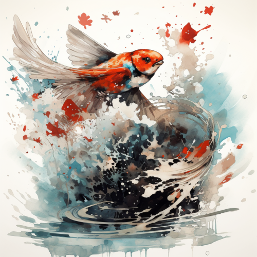 bird in sky and fish in water linked together. Trash polka and Japanese water color style combined.