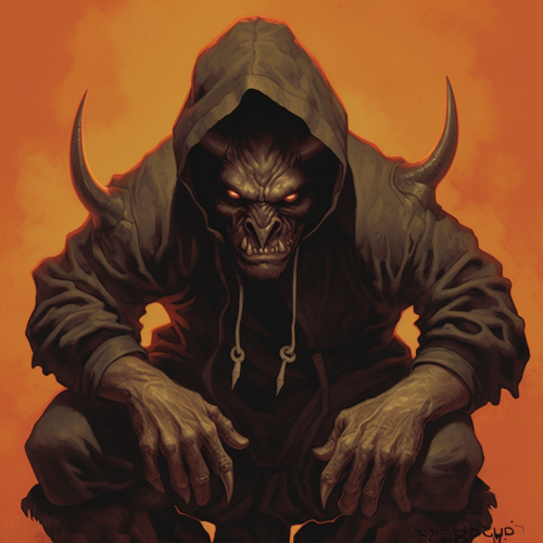 A hulking black demon stooped over wearing a hoody that reads "Mr. Drums" --v 5.1