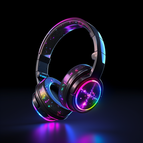 black background, realistic headphone, neon light, glittery projection mapping on the object HD 8K