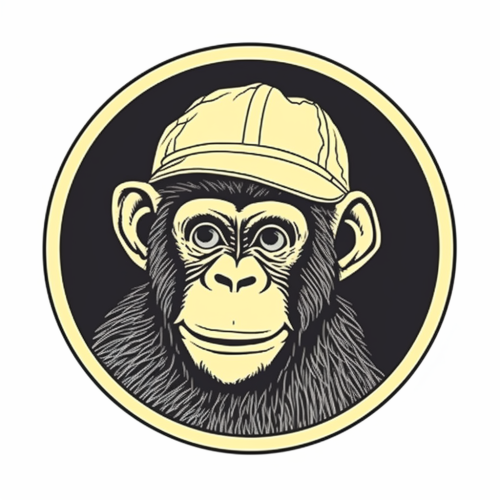 patch for a cap, monkey with a banana, linocut style, very simple, vector graphic, 2 colors --v 5.0