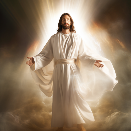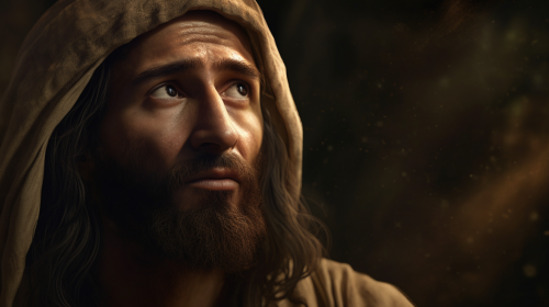 Generate a hyperrealistic and mystic image for a Christianity video, illustrating the Sermon on the Mount with golden accents. Utilize state-of-the-art digital art techniques to render Jesus and the disciples with lifelike precision, adding golden highlights to convey the wisdom and spirituality of the moment. Apply an aged page texture with golden undertones for a perfect blend of hyperrealism and divine elegance, --ar 16:9 --v 5.0
