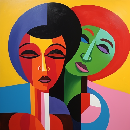 dada, large afro man and woman hugging, minimalism, no border, neo fauvism --stylize 50 --weird 150 --c 10 --ar 1:1