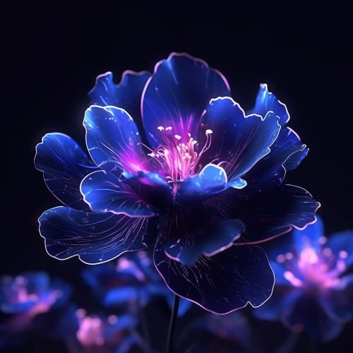 black background, realistic flower petals, neon light on flower, glittery projection mapping on the flower HD 8K