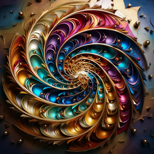 golden ratio, Fibonacci spiral, spray, waves, multi coloured 3D florescent art.