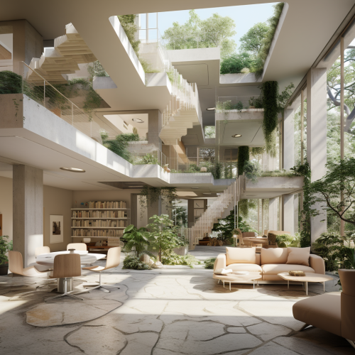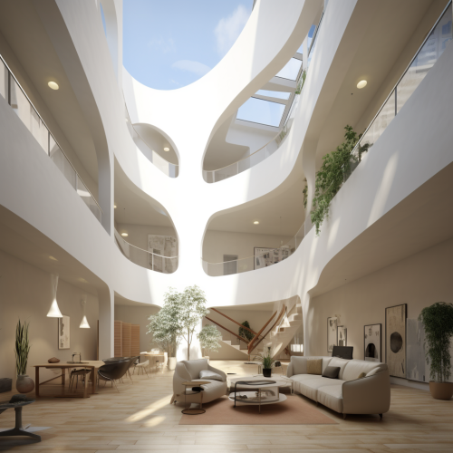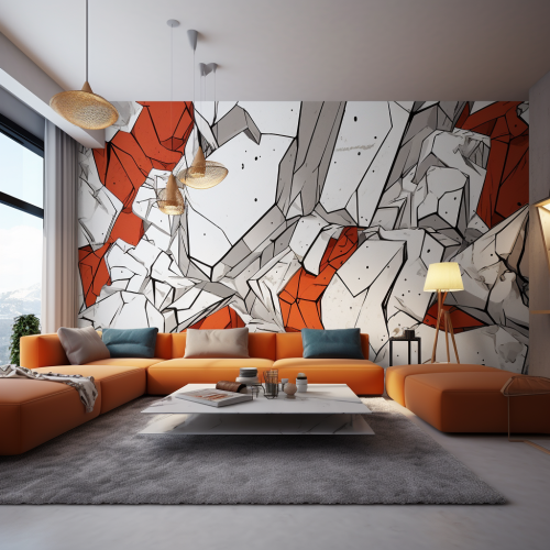 3d cartoon style funny cheerfull living room in renovating process with marble texture wall
