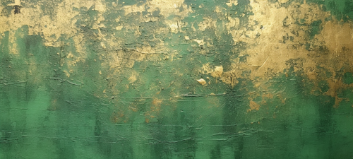 an acrylic painting in impasto technique, green and gold --ar 20:9 --chaos 10