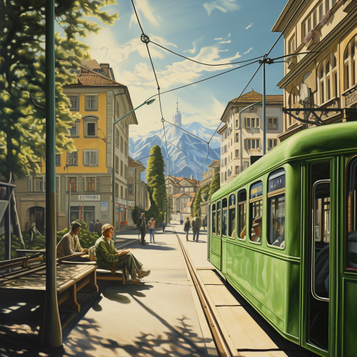Jahreszahlen der nächsten Jahre in Grüner Farbe auf einer Strasse in der Schweiz. Die nächsten vier Jahre sind sichtbar, danach verschwinden die Zahlen hinter dem Horizont