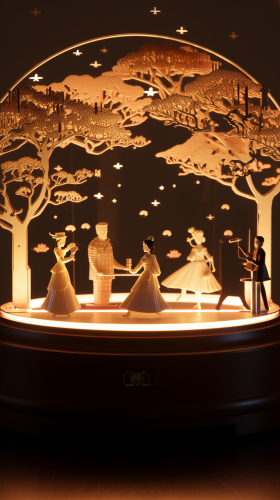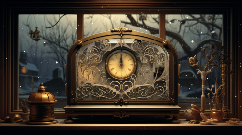 Illustrations with a hand-drawn touch. A music box placed in the window. --ar 16:9