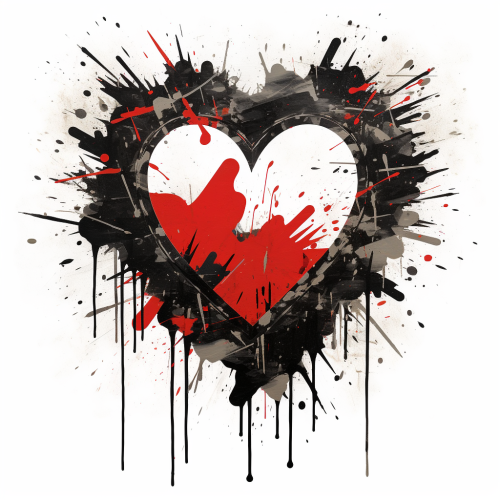 love heart, Steven Heller style, inspired by the bold graphics of Soviet Socialist Realism, high-contrast stencil technique, white plain trashed background.