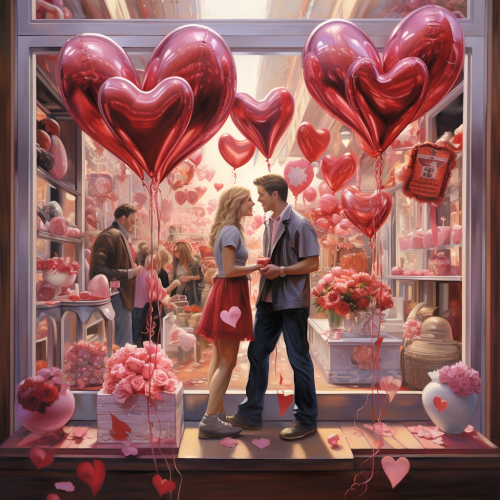 Valentine’s Day art show display of the very best most beautiful and creative high priced popular professional paintings and sculpture in high end high quality gallery photorealistic
