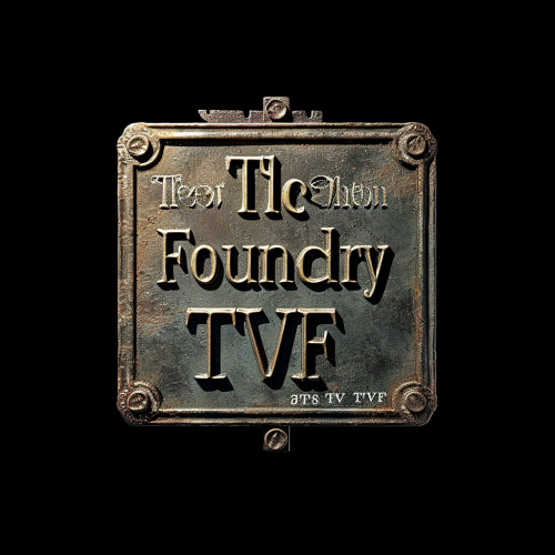 make a logo for "The Virtual Foundry" in the style of a bronze plaque featuring the first letter of each word, "TVF". --v 6.0