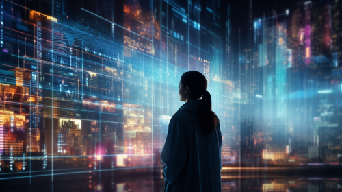 abstract banner image, concept of digital data, analytics, customer data lists, artificial intelligence, hyper realistic photography, detailed cinematic, 32k --ar 16:9
