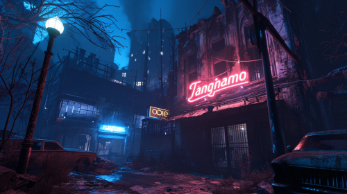 "Create an image of a high-tech control room with multiple screens, one of which prominently displays a progress bar at 99% with '2024' flashing in neon lights. The room is filled with a celebratory atmosphere, with digital streamers and a futuristic cityscape visible through the windows."