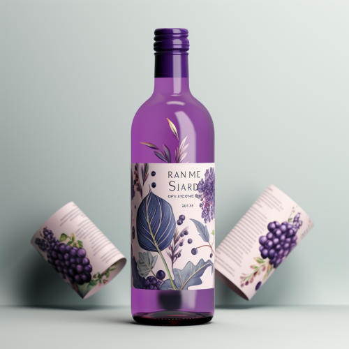 Design a packing label for a bottle featuring the prominently displayed with purple and green colour. Ensure the text is seamlessly integrated into the design, reflecting a blend of creativity and precision