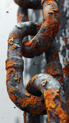 white abstract background, stylized color pencil sketch illustration of a thick heavy chains, rusty and worn, put an abstract light background behind. Give this illustration a modern high-fashion aesthetic --ar 9:16 --v 6.0 --s 250