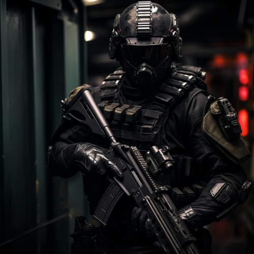The Deliverator belongs to an elite order, a hallowed subcategory. He ' s got esprit up to here. Right now, he is preparing to carry out his third mission of the night. His uniform is black as activated charcoal, filtering the very light out of the air. A bullet will bounce off its arachnofiber weave like a wren hitting a patio door, but excess perspiration wafts through it like a breeze through a freshly napalmed forest, Where his body has bony extremities, the suit has sintered armorgel: feels like gritty jello, protects like a stack of telephone books. --v 5.2
