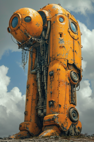 1940's construction mech based on norman rockwall style, several 1930's automobile in design, based in the 1940's , single driver machine, 16 foot tall, aspects of 1930's or 1940's automobiles in the design, yellow catapillar color, catapillar construction equiptment, 1940's technology, construction equiptment, norman rockwell inspired, hydraulic pistons, digital art, masterpiece painting, ultra detailed, ultra high definition, 8K resolution, 3D shading, superior quality, cover illustration, complex design, luminous highlights, rich vibrant colours, hyperrealistic, meticulously hyper detailed, high contrast, artstation --stylize 750 --v 6.0 --ar 2:3
