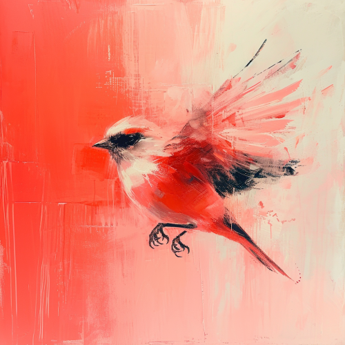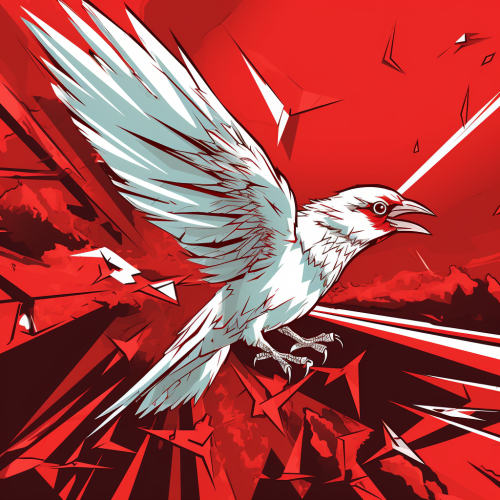 abstract Bird illustration red triangle background, in the style of white bold outline, jagged edges, trashcore, luminous shadowing, ar 3:1, v 5.1
