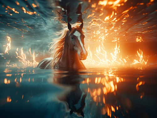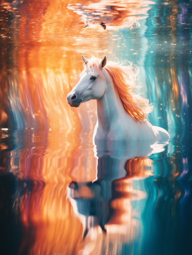 a picture of an abstract image of a unicorn with reflections, in the style of dark orange and light azure, bertil nilsson, glimmering light effects, blink-and-you-miss-it detail, jessica drossin, photo taken with ektachrome. --ar 3:4