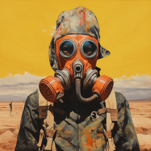 jean michel basquiat paiting style german army ww2 apocalypse on desert wearing mask