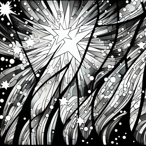 black and white, lineart, abstract, a galaxy of stars, despressed, stained glass style, colour page, high contrast