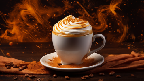 creamy cappuccino on a brown streaked background with clash of jets of coffee and milk --ar 16:9
