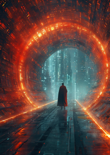 An Impenetrable Void in the style of Valerie Hegarty, Tetsuya Ishida, ultrarealistic, 8k, Futuristic Escape Velocity organisms evolving in the void of the inhumanish transcendental capitalist machine melting overdrive and dissipating at the speed of light inside an mise-en-abyme, optical illusion mirror, impossible looking atomic clock at the Event Horizon of a Black Hole melting in the style of H.R. Giger, Ghost in The Shell, unreal engine asset, 4d object, maximum detail, strong contrast and high exposure.