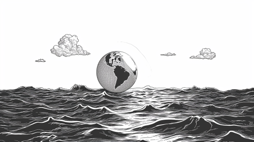 a minimalistic illustration of global warming, black and white, vector image, --v 6.0 --style raw --ar 16:9