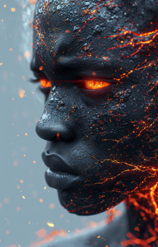 lava demon black fire, voodoo Shaman, high-fashion clothes, close up, cermonial, Atlantis, white fractal architecture, beautiful design, Ultra-realistic, Vogue-style, Kodachrome, --ar 9:14 --v 6.0 --s 750