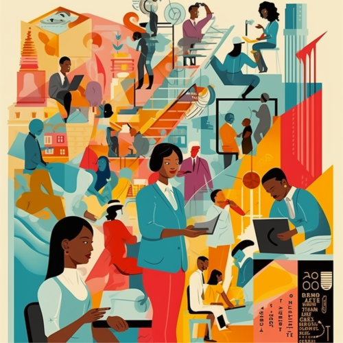 lifelong learning allows participation in the labour market for all persons. Social justice inspired by vector art