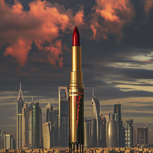 show a lipstick as a building in the Kuwait skyline v-4 ar-16:9 --v 6.0