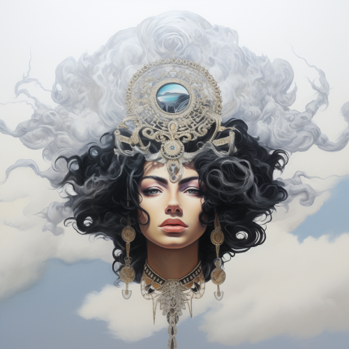 Ahura Mazda face zoom androgyne life sky power white background cloud